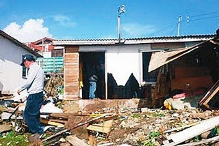 Me tuve que tapar, porque se quebró la muralla y casi se cae todo el techo encima.