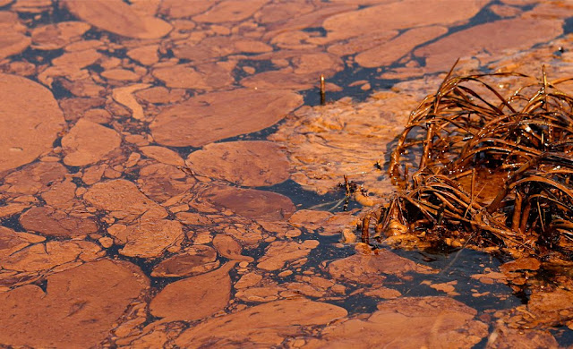 La grasa de las capas derrame en aguas profundas Horizonte una marisma, en la costa de Louisiana a lo largo de la bahía de Barataria Martes, 08 de junio 2010. (Foto AP / Charlie Riedel)