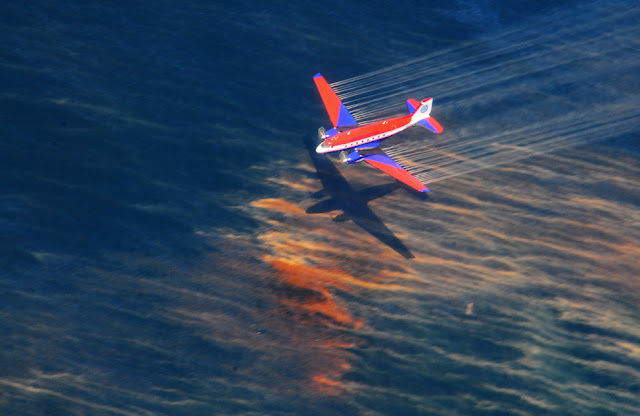 La tripulación de un Basler BT-67 aeronaves de ala fija comunicados de dispersantes de petróleo en las partes del derrame de petróleo frente a la costa de Luisiana en este 05 de mayo 2010 fotografía. (REUTERS / Stephen Lehmann / US Coast Guard)