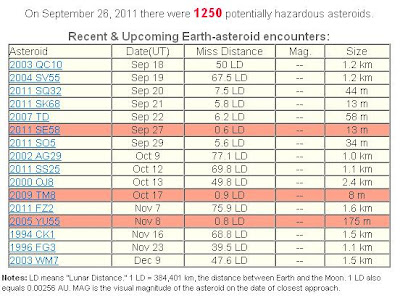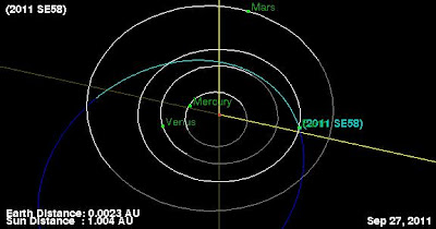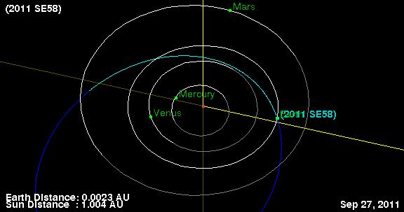 mencionado cometa Elenin. Me refiero al asteroide 2011 SE58, de 13 metros de