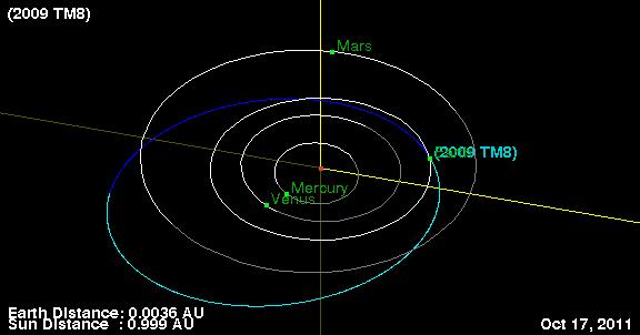 2009 TM8, de 8 metros de diámetro, estará a 0,9 LD (distancias lunares) de la