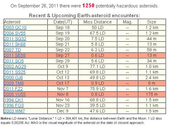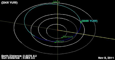 Tierra, y para el 8 de noviembre 2011 el no menos famoso, asteroide 2005 YU55,