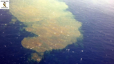 Estas manchas confirman la existencia de una erupción volcánica que está teniendo en los fondos marinos al suroeste de La Restinga, con dos bocas situadas a 750 y 500 metros de profundidad, de las que se está liberando magma. Junto a estas manchas se han encontrado varios bancos de peces muertos.