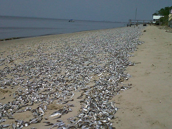 Originalmente se contaron decenas de miles de peces muertos, pero ahora se piensa que la cifra podría ascender a millones. Son más de 12 Km cubiertos de pescados que miden en promedio 9 cm cada uno, y la razón de la muerte en masa de los mismos es aún desconocida.