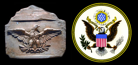 A la izquierda el águila romana, a la derecha el escudo estadounidense.