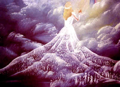 Al salir estaba en un campo como con un césped, caminaba el sol estaba radiante, era un día muy bello, a lo lejos miraba unos hermosos árboles frutales podía distinguir las frutas algunas eran manzanas, me llegaba el aroma, del lado derecho había una cortina muy larga que se perdía hasta donde estaban los árboles, yo me sentía aliviada, empezaba a dar gracias a DIOS por haber salido de ese lugar, levantaba mis manos gritaba de gusto, cuando me calme, volvía a observar todo y entonces me extraño las cortinas que yo veía del lado derecho que eran interminables y que me impedían saber que había de ese lado, empecé a caminar junto a la cortina que vi, era de tela de color indefinido pues era blanca pero al moverse con el viento leve que había despedía reflejos de varios colores, al avanzar caminando de pronto vi que de la cortina salían unos pies enormes se veían muy suaves, parecía como si se hubieran bronceado mucho, brillaban hermosamente, me quede inmóvil no entendía que estaba yo viendo, entonces alce mis ojos hacia arriba y vi que la cortina se perdía hasta las nubes, comprendí entonces lo que estaba viendo inmediatamente recordé las palabras del profeta Isaías y el apóstol Juan.