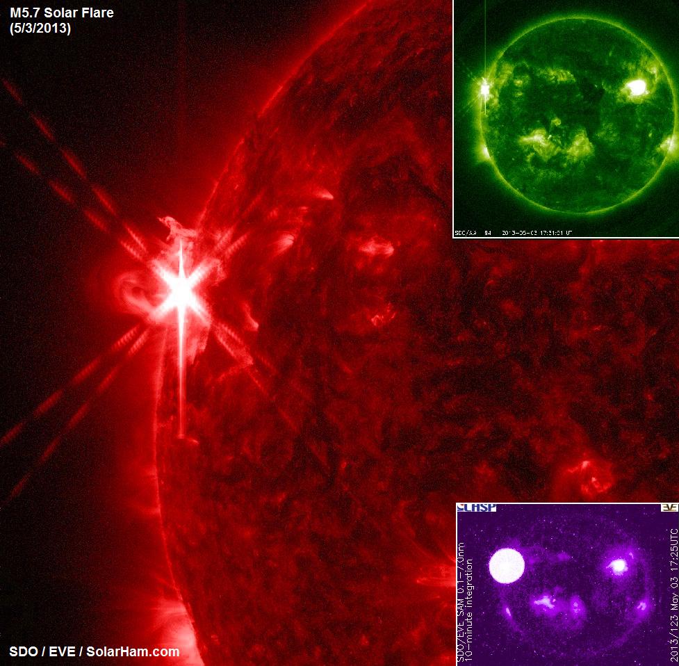 Una segunda impulsiva y fuerte llamarada solar clase M5.7 estalló y llegó al  17:32 UTC .