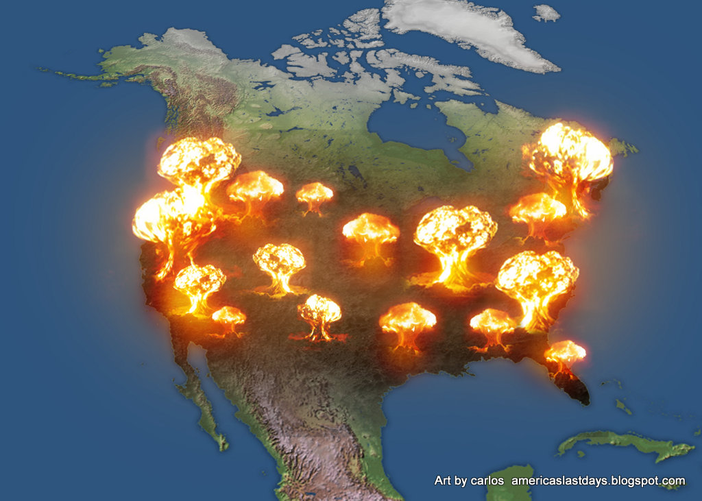 No creo que esto suceda en la vida real. Primero, no estamos hablando de la destruccion de america, sino de millones de personas calzinadas en fuego (313 para ser exactos). Segundo, las consecuencias de detonar bombas nucleares en todo el continente norteamericano afectaría las corrientes de aire tropicales lo que arrastraría los gases radioactivos de las bombas nucleares a todo el mundo destruyendo la vida del planeta tierra… No creo que eso suceda, en todo caso no serían bombas nucleares.