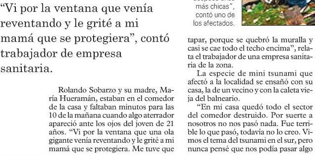 “Vi por la ventana que una ola gigante venía reventando y le grité a mi mamá que se proteguiera”