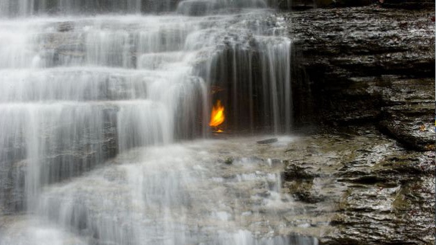Se trata de la llama eterna, ubicada detrás de una cascada en el parque Chestnut Ridge, en el oeste de Nueva York.