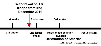 - Cuando los EE.UU. cree que ha ganado la batalla de la primera serpiente que habrá otro ataque contra Estados Unidos por una segunda serpiente. Esto significa que tan pronto como la guerra de Oriente Medio ha terminado, habrá un ataque contra Estados Unidos unos pocos años después.