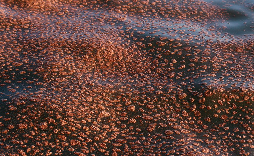 La grasa de las piscinas de aguas profundas derrame Horizonte contra la costa de Louisiana a lo largo de la bahía de Barataria Martes, 08 de junio 2010. (Foto AP / Charlie Riedel) #