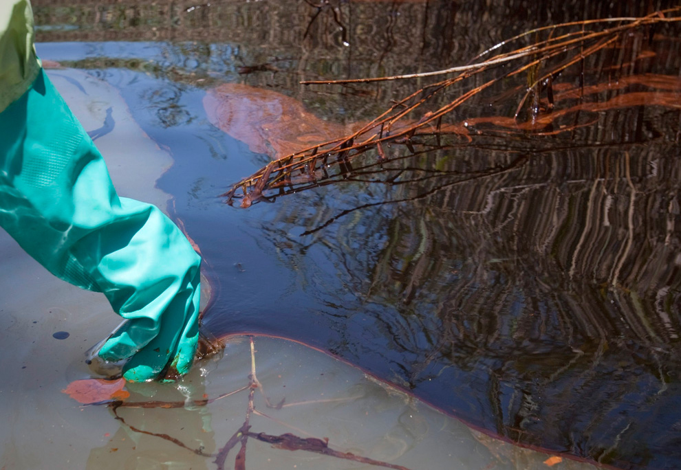 Los derrames de petróleo pueden agotar el oxígeno en el agua, proporcionando una fuente de alimento para los microbios que crecen sobre el petróleo y el consumo de oxígeno en el proceso.