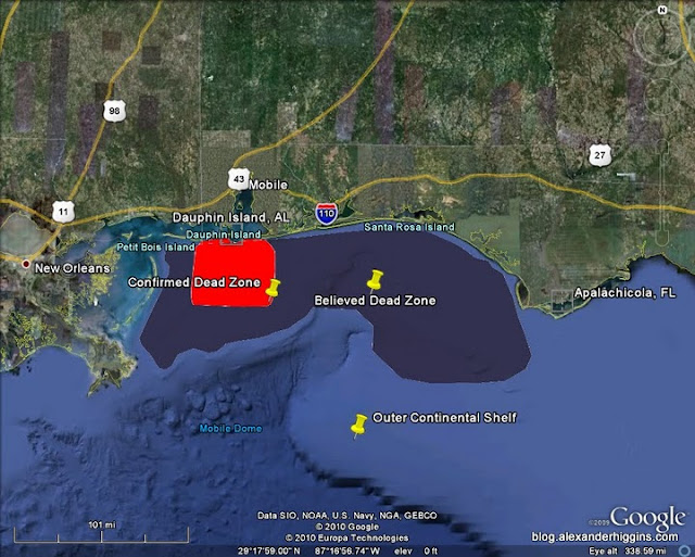 Discovery News es ahora la presentación de informes que los científicos han confirmado una zona muerta masiva, que abarca más de 1.600 kilómetros cuadrados, se ha creado frente a las costas de Alabama y están apuntando con sus dedos en el Golfo de derrames de petróleo BP como el culpable.