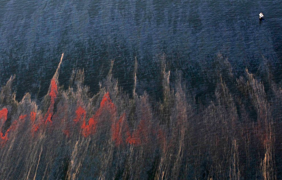 Aceite flota alrededor ya través de los auges marismas del Delta del Mississippi el 23 de mayo de 2010. (REUTERS / Daniel Beltra / Greenpeace)