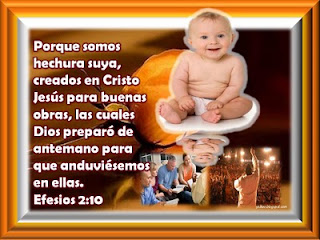 Efesios 2:10 dice: Porque somos hechura suya, creados en Cristo Jesús para buenas obras, las cuales Dios preparó de antemano para que anduviésemos en ellas.