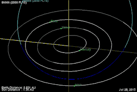 La NASA ha publicado una proyección animada de la trayectoria del asteroide, que se puede ver a continuación. 86666 aparece desde la parte superior izquierda de la pantalla, ya que se acerca a la órbita de la Tierra.