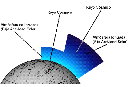Los estudios realizados por CERN en el año 2000, indican que el incremento de la tasa de rayos cósmicos que inciden en la atmósfera pueden generar un aumento sustancial de la capa nubosa que cubre la superficie terrestre. Entonces, la nubosidad asociada al incremento de rayos cósmicos (3-5% del total de nubosidad global) es un factor indirecto de baja actividad solar.