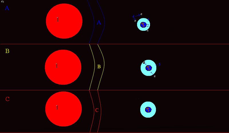 CME: La onda más peligrosa, ya que daña a los satélites y a los transformadores eléctricos del planeta por los que pase electricidad. Daña las comunicaciones en todo el planeta. Tiene campo magnético: si está orientada al norte, rebotará inofensivamente en la magnetosfera; si está orientada hacia el sur, causaría una catástrofe global, por los daños que ocasionaría.